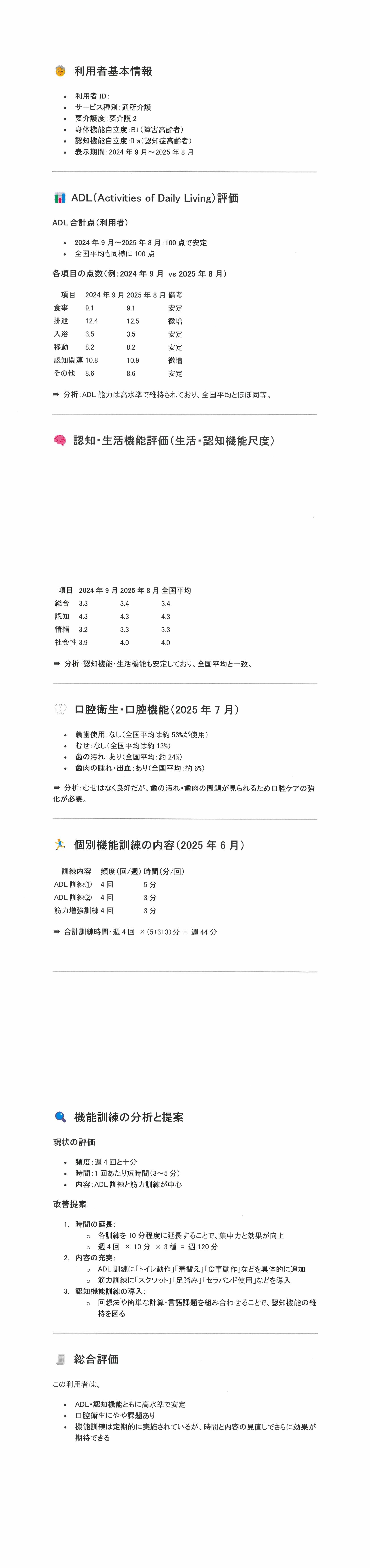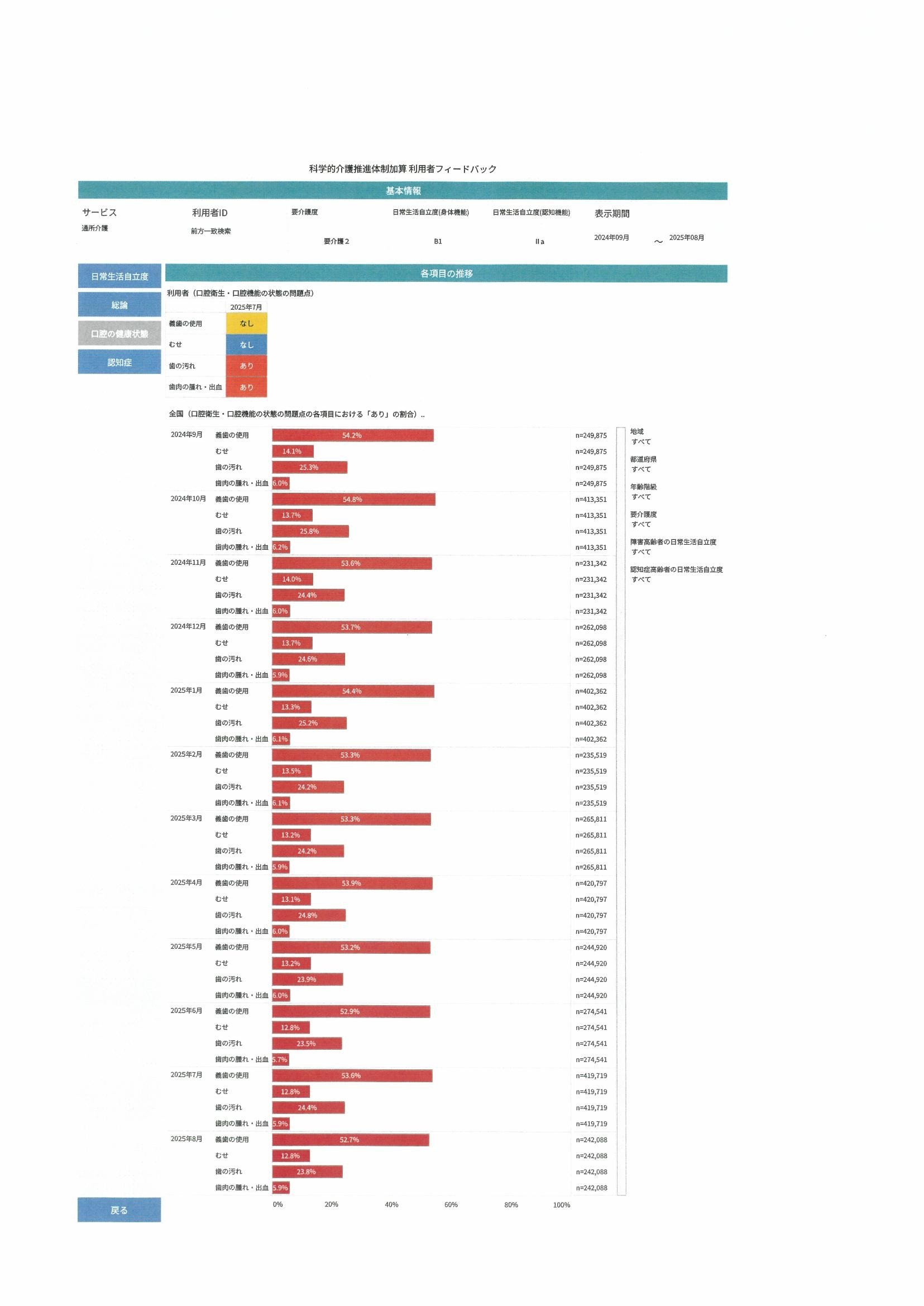 科学的介護(LIFE)のご利用者様のフィードバック表です。