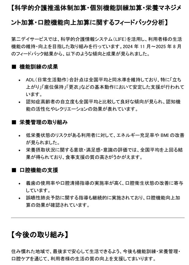 科学的介護(LIFE)の取り組み、ご利用者様生活の質の向上