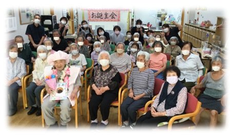 センター全体のお誕生日会にて、9月に100歳を迎えた方がいらっしゃいました。 (昨年に続いてお二人目です)