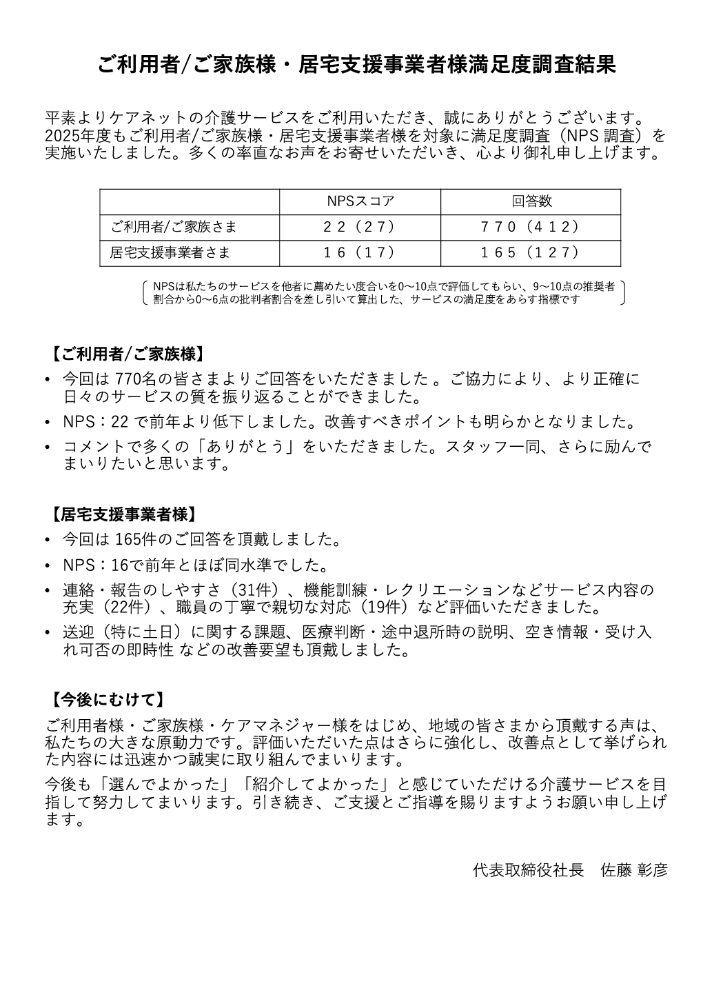 ご利用者/ご家族様・居宅支援事業者様満足度調査結果