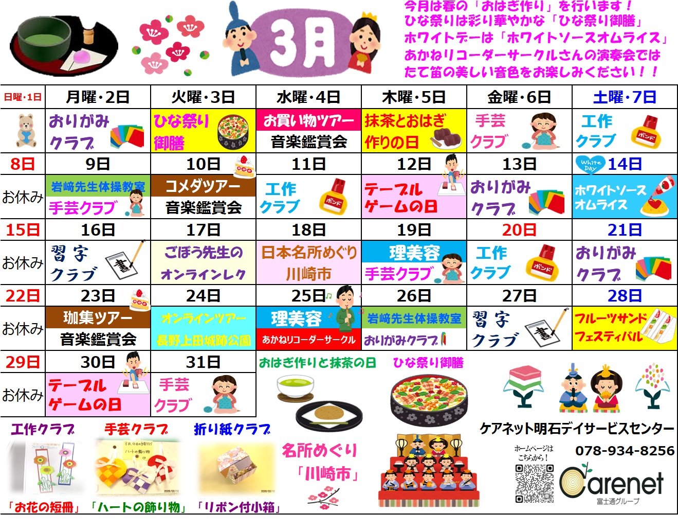 3月のイベントカレンダーをアップいたしました!楽しいイベントで利用者様に喜んでいただけるよう職員一同頑張ります!宜しくお願いします!
