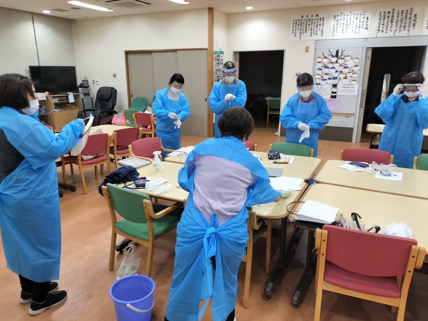 感染防護具の着脱研修を職員間で実践しました( ..)φメモメモ