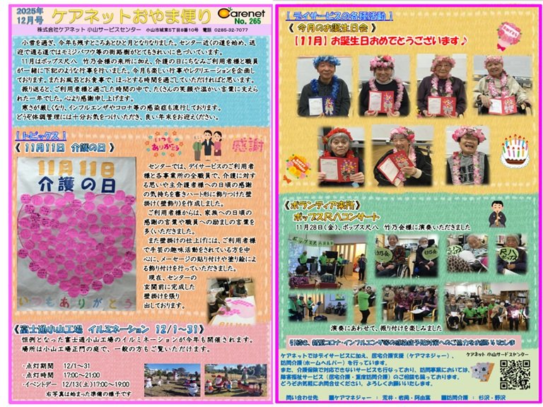 小山サービスセンターの2025年12月の便りが出来上がりましたので、ぜひご覧ください!