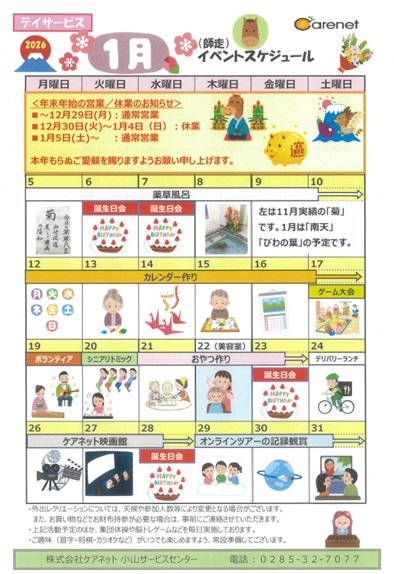 2026年1月度 月間プログラム(イベントスケジュール)です