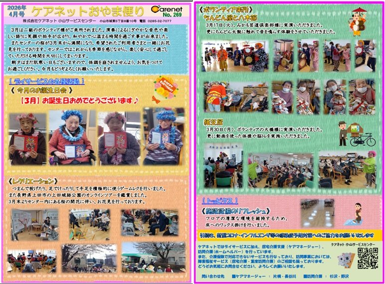 小山サービスセンターの2026年4月の便りが出来上がりましたので、ぜひご覧ください!